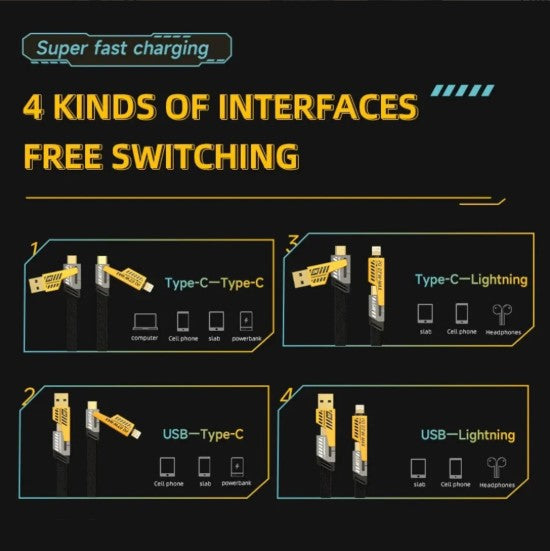 Universal 65W/27W 4 in 1 Charging Data Transfer Cable In Premium Quality